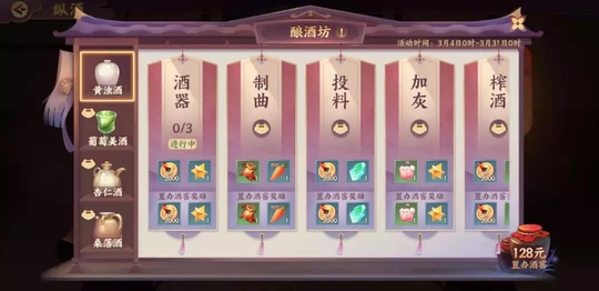 白泽限定服饰 叁 活动内容 活动期间,灵主大人可通过酿酒坊酿制美酒。每种酒都需经过六道步骤方能制成佳酿,每完成一个酿制步骤,都将获得奖赏。完成所有步骤后,佳酿便可制成。共有七种美酒期待您的酿造。 若灵主大人购买酒窖,可获得额外的“置办酒窖奖励”。酒窖仅需置办一次喔,置办后即可领取当前已酿制完成的所有酿酒奖励。