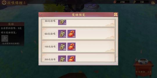 谈及灵府,相信大家都不陌生。 在云梦之境的灵府玩法中,灵主大人们不仅可以遇到志同道合的小伙伴,共览云梦山水,还可以与他们一起参与灵府的各项活动,增进友情,并且还能拿到十分丰厚的奖励~ 下面就让小籍为各位灵主大人来介绍下,灵府中都有哪些玩法活动,可以和小伙伴一同参与玩耍吧! 结界试炼 壹 挑战规则 结界试炼是灵府的每日活动,总计6个关卡,伤害可累计,每日可挑战2次。每次挑战首领时,只有30回合机会,当回合数满后,就会自动退出并结算此次挑战奖励。 贰 重置规则 击杀所有的试炼首领,或距上次重置达到14个自然日,结界试炼进度以及累计的伤害都会重置。 叁 挑战奖励 每次挑战都可以获得腰牌、通宝、寿星碎片等奖励,个人单次伤害越高,挑战奖励也越好。每当一个首领被击败,全府都可以获得关卡奖励。 妖鱼之殃 壹 挑战规则 活动每天18:30-20:30开启,每个灵府成员在活动时间内可以挑战3次,挑战失败也会扣除挑战次数。 妖鱼之殃总共有4个难度,难度越高,获得积分越高。他还可以组队参与,组队挑战可以获得额外的伤害加成,建议最好组队挑战哦。 贰 重置规则 活动结算时间为每日20:30。 叁 挑战奖励 挑战难度越大,单次挑战的结算奖励也越好。灵府成员每成功挑战一次,就可以累积灵府积分,灵府积分越高,活动结束后发放的奖励越好。 妖鱼之礼 积分100-249 府令*1000 腰牌*20 初级寿星碎片*5 妖鱼之赠 积分250-499 府令*1250 腰牌*25 或 初级寿星 碎片5-10 高级星曜*1 妖鱼之宝 积分500-999 府令*1500 腰牌*30 或 初级寿星 碎片5-10 高级星曜*1 妖鱼之珍 积分1000+ 府令*2000 腰牌*40 或 初级寿星 碎片5-10 高级星曜*1 符灵派遣 壹 派遣规则 每天最多可以派遣2名符灵,供其他府员借用,派遣符灵后长期有效,可不用重复派遣。 只有在部分玩法中才可借用他人符灵,分别是:故事副本、渡劫之渊单人、河洛秘境、星宿之域单人以及世界奇遇单人。 而每次战斗只可借用1名当日未借用过的符灵,每天最多可借用他人符灵20次。 贰 派遣奖励 每当派遣的符灵被借用一次,都可获得1个腰牌和100通宝,奖励都会在次日发放。 碎片互赠 壹 碎片求取 每名成员每天仅可进行1次符灵碎片的求取,并且只有拥有相应的符灵才可进行求取,每次求取可获得的碎片都有上限,绝品只能求取1个,极品是2个,精品3个,凡品4个。 贰 碎片赠送 每名成员每天最多可赠送10次碎片,每次只能捐赠1个碎片,并且每天对同一个灵主只能捐赠1次,每次捐赠都可以获得腰牌奖励,捐赠的碎片品级越高,获得的奖励越多。 籍智问答 壹 活动规则 在活动时间,小籍会在灵府的聊天频道中不间断的提问,每过30秒会提出一个新问题,总共30道题,灵符成员可以将答案以文字形式发送至灵符的聊天频道进行答题。 贰 活动时间 只在每周一、三、六的19:15至19:30开启。 叁 活动奖励 在规定时间内回答正确的,可以获得大量腰牌,所在的灵府也能获得府令,而在灵府内最先答对的成员,还可获得双倍奖励。 (PS:答题库非常丰富,包括游戏玩法、历史知识、趣味字谜等,若自己答不上来,可以参考灵府中其他成员的答案) 投喂锦鲤 壹 活动规则 活动每日都可进行,每天都可投喂3次。锦鲤总共有4个不同的品质,从低到高分别为:乌鲤、写鲤、三色鲤、黄金鲤。 贰 活动奖励 投喂后,会根据吸引来的锦鲤等级高低,获得通宝、寿星、星曜等随机奖励。若在当日,全府累积的投喂数达到指定次数,可在次日领取相应奖励,次数越多奖励越好。 府市 通过参与灵府中各类活动获得的腰牌与府令,可以在府市购买物品。 壹 腰牌商店 全员都可以通过腰牌购买物品,购买所得为成员自己拥有,所购物品每周都有限购次数,购买达到限购次数,本周将不能继续购买。 贰 府令商店 只能由府主和府佐通过府令才可进行购买,购买之后全员共享。 30000府令每周限购一次经验加成,够买成功之后,可以获得“战斗中获得符灵经验增加15%,并持续一周”的效果; 30000府令每周限购一次通宝加成,购买之后可以获得“战斗中获得开元通宝增加15%,并持续一周”的效果; 3000府令可以购买灵府宝箱,购买成功之后通过邮件发送给全员,灵府宝箱可随机获得寿星、星曜、绢帛、通宝等物品。 编辑:叶子猪小秘书