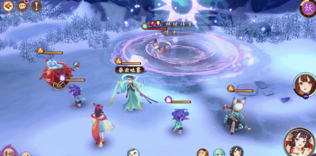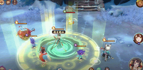 【人界效果】:扫晴娘进行晴天的祈福,为我方全体施加最多2个持续2回合的随机增益效果。 【妖界效果】:扫晴娘降下阴天的诅咒,为敌方全体施加最多2个持续2回合的随即减益效果,冷却时间5回合。 技能三:趋吉避凶
