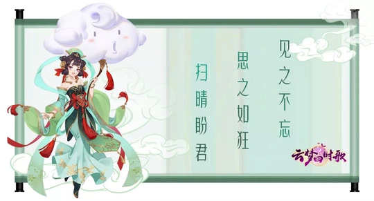 今日小籍听说了一个有趣的传闻, 在云梦之境中有一位专门 驱散乌云的符灵小姐姐, 每个阴雨连绵的天气里, 都可以找她来帮忙唤来晴空。 没错,这位正是扫晴娘小姐姐~ 今天的符灵爆料之中, 来和小籍共同了解一番 关于扫晴娘的故事吧~ 符灵记事