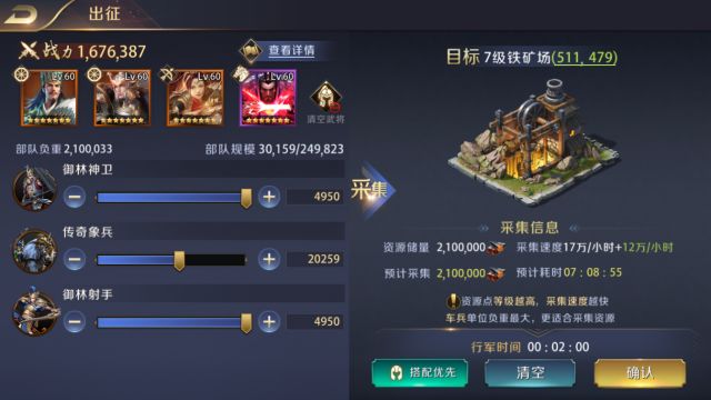 04 铁矿 铁矿可以在野外通过搜寻 铁矿场 来获取,铁矿场的最高等级依然是7级。 当各位君主们占领铁矿场后,源源不断的铁矿就可以收入自己的腰包了,从此铁矿不再短缺。 采集铁矿也是除了自己在产出外的 额外收入 ,当然前期对铁矿资源需求不大,但是 中后期 还是非常需要铁矿这种资源的。