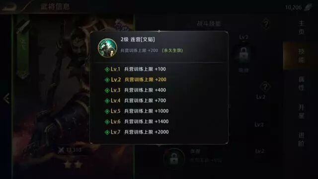 兵营训练上限+2000。这技能在前期储备兵力和后期快速发展兵力能起到不少的作用。