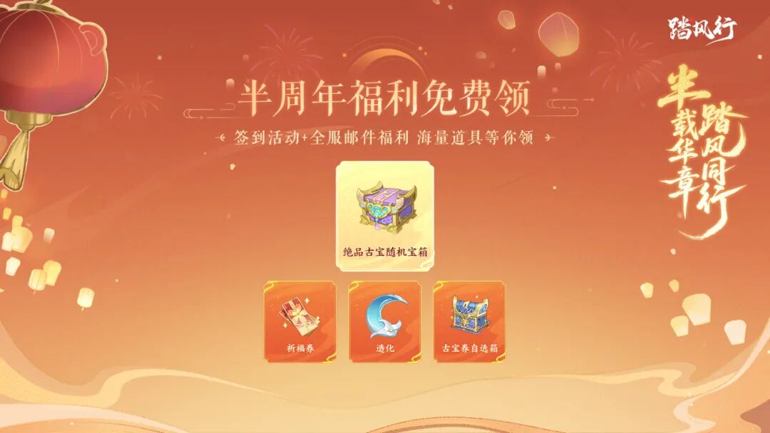 时光荏苒,转眼间与各位道友在踏风行世界相伴同行半载春秋。这段旅程因每位道友的参与而精彩,为庆祝这个意义非凡的时刻,踏风行即将推出半周年庆典活动! 半载华章·全服献礼 全新月签到活动「半载华章」11月16日温暖上线!只需每日登录签到,绝品古宝随机宝箱、稀有升级材料、海量抽卡券等你来领取!共同回顾这半年来的点点滴滴,每份奖励都是诚挚的谢意! 此外,为感谢各位道友的一路相伴,特地准备了全服福利邮件: 祈福券*20 造化*1000 古宝券自选箱*10 奖励将通过游戏内邮件发送,请诸位道友记得上线查收哦! 副本挑战升级 上线时间:11月19日 堕神渊扩容:关卡上限提升,更强boss等你挑战 长生窟扩容:新增高阶关卡,探秘更深处 太虚识海扩容:境界突破,神识修炼再进一步! 仙宝月活动-轮回司命 上线时间:11月21日 全新仙宝月活动【轮回司命】惊艳登场,包含: 限定套装-【九幽冥主】、限定仙宝-【轮回判官笔】 独特的设计和强大的属性,必将成为道友们争相追求的宝物! 仙魔丹-玉虚紫府丹 上线时间:12月4日 炼丹系统再添新成员!「玉虚紫府丹」重磅推出,仙魔等级修满后可炼制,对应提升相应的仙魔属性,助力道友们在仙魔两道的修行上更上一层楼! 神秘联动12月开启 神秘联动即将开启,届时将推出联动时装+仙宝!关键词【天地不仁,以万物为刍狗】,诸位道友不妨在评论区留下您的猜想,也许联动内容就是你的心之所想!还有超多的联动馈赠等着道友们来解锁,让你在修炼的道路上体验不一样的精彩! 半周年庆专场直播 11月16日(本周日)晚7:30,锁定踏风行手游抖音官方直播间,半周年庆专场直播盛大开幕!直播间专属福利不定期掉落,来看直播玩踏风行,好运瞬间拉满! 半载同行,感恩有你;新的征程,再续华章!踏风行半周年庆典更多精彩内容与福利将持续放送,诚邀诸位道友共赴这场嘉年华,一同前往下一个周年! 愿与诸位道友,共踏青云,同行不朽! 编辑:月光下完美