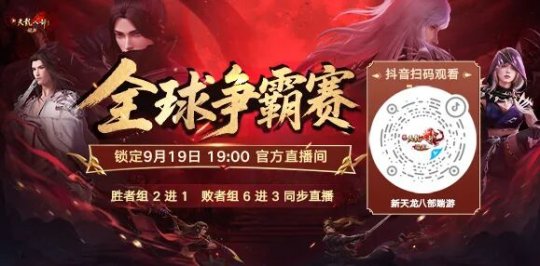 激动的心,颤抖的手!振奋人心的比赛又要来啦! 今晚将迎来新全球争霸赛胜者组2进1晋级赛&败者组6进3的角逐!强者对决,谁能拔得头筹! 特邀解说东皇,与少侠相约9月19日 19:00,“新天龙八部端游”抖音官方直播间! 胜者组2进1: 败者组6进3淘汰赛: 9月22日更新内容 精彩活动 凤凰竞武场-3人组队再开 9月22日更新后至10月22日24时,等级达到60级的少侠,每周一、周三13:00-15:00、21:00-23:00可组成3人队伍前往束河古镇陆寻源处参与凤凰竞武场(组队)活动。每日最多参与3次,参与当天可根据成绩最好的1次领取奖励。 常规服&89卡级服排名奖励 69卡级服排名奖励 02更新优化 拭剑天下排行榜异常问题补偿 9月22日更新后至9月28日24时,所有参与过拭剑天下第4赛季的少侠可前往洛阳(296,225)周伯衡处领取补偿奖励【坐骑:蛋蛋鸡飞椅(15天)】。 编辑:月光下完美