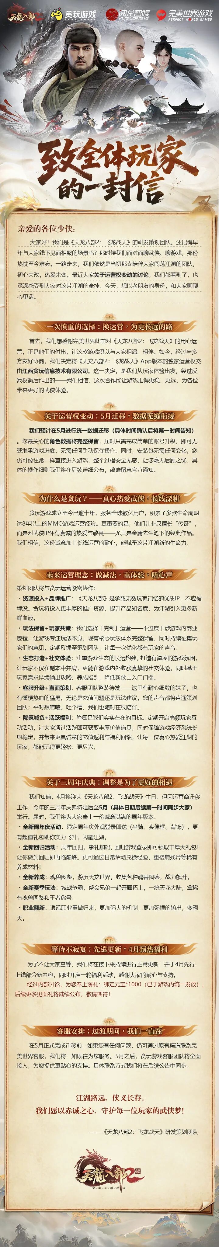 天龙八部2飞龙战天:江湖未远,初心不改——致全体玩家的一封信