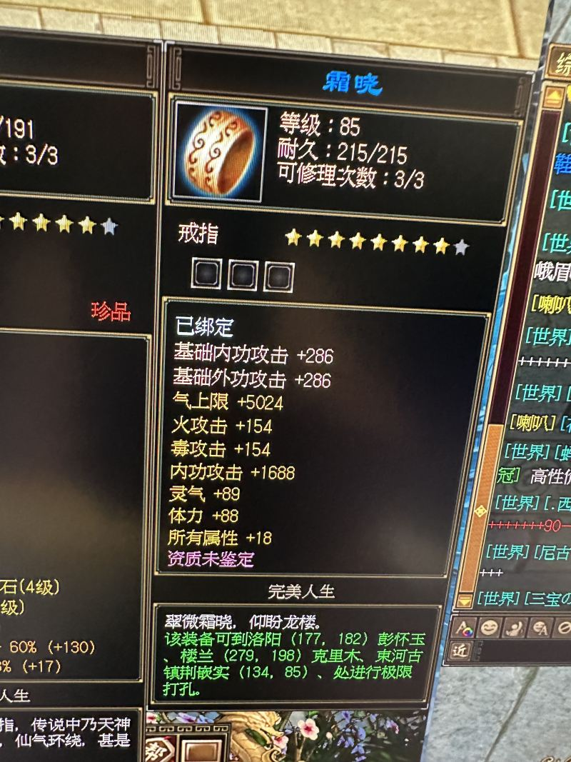 不知不觉,咱们的记者团锦鲤投稿栏目已经迎来了第六期! 龙妹真是每天都泡在大家的投稿里,被大侠的绝世好运闪得“眼花缭乱”。 竟有大侠仅用1000金币成本逆袭怒赚4.8万元宝?! 这江湖,果然是卧虎藏龙,欧气冲天! 话不多说,赶紧搬好小板凳,一起来吸吸这波冲破天际的欧气吧! 满级区 来自记者团大侠【逸风】的投稿 冰火属性164 命中、体力、定力、身法也都是强力词条 如此完美的属性已经让人羡慕不已,但这个戒指背后的故事更让人惊掉下巴! 以下来自投稿玩家原话: 1000金还能这么玩,赚麻了!三天攒了1000金,洗出了一个完美武魂卖出2.1万元宝,立即拿去抽出13本武魂书,卖的金币搓95戒指,卖了4.8W元宝。 这是何等的天选欧皇,怎样的胆识与运气! 这才是真正的原地暴富! 来自记者团大侠【新宿】的投稿 来看一只勇猛4721的幻羽飞镰 虽然是4级变异,但资质高,性格好 技能打得十分完美 而且蓝色的外观也是帅帅哒! 来自记者团大侠【独泊】的投稿 好一件顶级大血衣 10422血上限+94点体力,1800内外双防 340点闪避,还有17火毒抗性 让人看了就安全感爆棚! 来自记者团大侠【藏锋】的投稿 火玄毒146 力量、体力、定力、会心 很不错的护符 搭配纯净红晶石+红冥石 龙妹盲猜,这必定是某位逍遥大佬的毕业护符吧? 1498外功防御 闪避、灵气、体力、定力、身法、所属一应俱全 等等,强化+9? 这位大侠的运气,实在深不可测! 来自记者团大侠【情怀丶】的投稿 内外攻击1892 命中、力量、灵气、体力、身法 又是完美的词条 算得上是天龙寺的极品毕业护腕,羡煞旁人! 来自记者团大侠【晨风曦雨】的投稿 1608内功防御 灵气、体力、定力、身法、会防、所属 相当全面的词条 而且各大门派通用 谁穿谁强,都是实打实的硬实力提升! 89级区 来自记者团大侠【メ无极ぃ天】的投稿 本期第二只幻羽飞镰登场 不光是完美的勇猛性格 而且力量资质达到了惊人的5085! 龙妹今天算是大开眼界了 冰火玄146 灵气、体力、所属、气上限 妥妥的武当毕业护符啊 来自记者团大侠【独泊】的投稿 勇猛4896的变异幼齿龙 2035的完美成长 技能也是一应俱全 真是又可爱又能打 来自记者团大侠【完美人生】的投稿 火毒154 内功1688 搭配气上限、灵气、体力和所属 最适合逍遥无疑了 星宿带上也有不错的效果 来自记者团大侠【胖丁超级猛】的投稿 内防、闪避、灵气、体力、定力、会防、所属 相当不错的毕业手套 如果能让龙妹拥有 就算要升职加薪也愿意呀! 来自记者团大侠【故事????】的投稿 内防1579 闪避、灵气、体力、定力、身法、会防 没有一个属性是浪费的 绝对是一件不可多得的卡89级鞋子 来自记者团大侠【豆】的投稿 冰玄154 体力、定力、身法、会心、所属 搭配5545的双排黄晶石 把玄攻击拉满了 峨嵋、天山、少林玩家看了都说好! 69级区 请浏览以下内容 来自记者团大侠【Zelda】的投稿 名叫七星手套,实则为深蓝大八星! 内外防1096 还有闪避、灵气、体力、定力、身法 可以称为卡69级的手套天花板了 来自记者团大侠【晚点再说】的投稿 本期的又一件顶配深蓝大血衣 血上限6563+61点体力 冰玄抗、内防、会防、所属 词条属性相当全面 来自记者团大侠【小号深蓝大八星】的投稿 内外防1090 闪避、体力、定力、会防、所属 还打上了红宝石+祖母绿 穿上这双鞋,安全感瞬间爆棚! 来自记者团大侠【梓姿】的投稿 属性很全面的戒指 冰火毒101 内外攻击1243 搭配命中+体力 完美毕业! 来自记者团大侠【你好像有猫饼】的投稿 根据投稿大侠描述 夺金赐福活动签到14天免费送的回天神石 一发入魂大完美885! 恭喜这位大侠啊! 龙妹实名羡慕了,这种天降鸿运的好事,何时才能轮到我啊~~~ 编辑:月光下完美