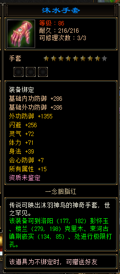 满级区 来自记者团大侠【少林大弟子】的投稿 先来看一个顶变幻羽飞镰 初始力资高达3109,简直是天生神力 成品双十更是来到惊人的5803 这是目前龙妹见过最高资质的宝宝了,还有更高的来踢馆吗! 来自记者团大侠【旺旺小小苏】的投稿 冰火玄毒171 还带体力、会心、所属 词条完美,属性拉满 天龙寺弟子看到这里估计已经坐不住了 当然,其他门派带上也是原地起飞! 来自记者团大侠【初秋丶】的投稿 这个戒指同样不遑多让 冰火玄毒170 命中、体力、会心样样俱全 这俩戒指放一起,龙妹的选择困难症都要犯了! 来自记者团大侠【学艺两年半】的投稿 冰玄毒138,内功1514 有定力,有所属 峨嵋、星宿玩家表示眼馋! 来自记者团大侠【白玉京】的投稿 10226血上限、冰火抗17 还有力量、体力、身法、所属 超绝毕业大血衣! 来自记者团大侠【白玉京】的投稿 外防1783 搭配闪避、灵气、体力、身法、会防和所属 小孩子才做选择,龙妹全都要! 又肉又有输出,简直是六边形神装! 89级区 来自记者团大侠【我太和平了】的投稿 血上限+20%! 还带着玄毒攻击、体力、所属、减毒抗 这属性洗得非常亮眼! 来自大少林的满满压迫感! 来自记者团大侠【我剑未尝不利】的投稿 外功防御1664 闪避、灵气、体力、定力、身法、会防 你想要的词条全都有 教科书级别的卡89级毕业手套 可以直接用一辈子了! 来自记者团大侠【一念胭脂红】的投稿 再来看另一个手套 外防1355 闪避、灵气、体力、身法、会防、所属 虽然数值没上一个那么极限 但有所属的加持弥补 也是抢破头的好东西啊,羡慕了! 来自记者团大侠【丿江阿生】的投稿 玄攻击152、内功攻击1667 力量、体力、身法、会心、所属 这不就是少林的梦中情戒嘛~ 来自记者团大侠【郭正山】的投稿 冰火玄毒147 体力、所属都是通用的强力词条 美中不足的就是气上限 要是能换成命中,就直接封神了! 但是瑕不掩瑜,已然非常极品~ 69级区 来自记者团大侠【暮雨落红尘丶】的投稿 血上限6479、内功防御1118 还有冰抗、闪避、灵气、体力和所属 卡69的完美词条血衣 穿上这件衣服,妈妈再也不用担心我被秒了 来自记者团大侠【丿风闲】的投稿 你叫七星鞋,结果是深蓝大八星 内外双防1018 闪避、灵气、体力、身法、所属一个不缺 该有的核心属性全都有 龙妹看完羡慕了! 来自记者团大侠【泡芙】的投稿 再来看另一双鞋子 内外双防1044 还有闪避、体力、定力、身法、会防,词条完美 “自古绑定出极品” 这话果然没错! 来自记者团大侠【暮雨落红尘丶】的投稿 冰玄毒95 还有命中、体力、身法 虽然比深蓝少了一个词条 但是现有的词条种类和数值都特别好 这又何尝不是极品? 终极彩蛋 来自记者团大侠【ヽ衍夏成歌メ】的投稿 这位玩家玩小号,在千里共婵娟活动用免费灵晶单抽就抽到中秋限定时装 真正的“一发入魂”! 来自记者团大侠【张元英】的投稿 投稿大侠表示:战令里面差不多20个钥匙,又小氪了一点,40个钥匙开出6级晶石自选礼盒 这是什么超绝好运了?这一颗石头下去,属性攻击原地起飞! 来自记者团大侠【い伪装い】的投稿 这位大侠也不甘落后,琅嬛宝箱开出5级晶石自选礼盒 事实证明,只要宝箱开得多,总能等到奇迹! 恭喜这位大侠,又省了一大笔! 编辑:月光下完美