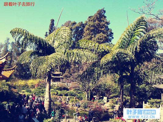 三天门 漫步金殿植物花卉展区,嫩绿的蕨丛密不透风般在林下滋长,种类繁多的兰花或点缀其间,或俏立木桩上,或从天空倒垂而下,素雅地绽放,姿态俏然有加,与盘栽的艳丽山茶花、杜鹃花、一品红、海棠花相映成趣;滴水观音繁茂壮大,婆娑成一丛又一丛,枝间萌生出巨大的绿蜡烛样的花序,让北方的游人大开眼界。兰花的清丽脱俗,就连国事缠身的唐太宗,也有被打动的时侯。瞧瞧,太宗一开口,那咏兰的诗就款款而来:“春晖开紫苑,淑景媚兰汤;映庭含浅色,凝露泫浮光。日丽参差影,风和轻重香;会须君子折,佩里非芬芳。” 在花卉园的热植物展区,我们还见识了恐龙时代的孓遗植物桫椤,藤萝摇曳的“过江龙”水榕树,来自非洲沙漠的姿态万千的仙人掌,黄灿灿的以不可阻挡之势蔓延整座围墙的炮仗花,还有缀满一串串黄色细碎花朵、在围墙外对园中热闹探头探脑的圣诞树。