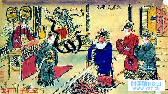 天津杨柳青画中的魁星形象 二是金殿中的“魁星楼”也是值得农墨渲染的地方。“橡笔点魁鳌头点斗, 丹心量德慧眼量才”,金殿太和宫紫禁城墙上有一二层高的魁星楼,靠窗有一金身魁星雕塑。“魁”字拆开来,一半是“鬼”,应魁星的面目丑陋,一半是“斗”,应魁星才高八斗。但见他右手握一管朱笔,意为用笔点定中魁人的姓名,左手持一只墨斗,右脚金鸡独立,脚下踩着海中的一条大鳌鱼的头部,“独占鳌头”也正是由此而来。关于魁星还有一段传说:话说古代有个秀才,才高八斗,出口成章,过目成诵,无奈面貌丑陋,满脸麻子,而且一只脚还瘸了,故而屡屡面试时落第。但是他的文章又写得太好了,终于被乡试、会试步步录取,高中榜首,有幸获得了皇帝亲自面试的殿试机会。当皇帝亲自面试他的文才时,一看他的容貌和走路姿势,心中甚为不悦地问:“你那脸是怎么搞的?”他回答:“回圣上,这是‘麻面映天象,捧摘星斗’。”皇帝觉得这人怪有趣的,又问:“那么你的瘸腿呢?”他又答:“回圣上,这是‘一脚跳龙门,独占鳌头’。” 他的机敏让皇帝大悦,随又问:“那朕问你一个问题,你要如实回答,你说如今天下谁的文章写得最好?”他想了想说:“天下文章属吾县,吾县文章属吾乡,吾乡文章属舍弟,舍弟请我改文章。”皇帝大喜,阅完他的文章后拍案叫绝:“不愧天下第一!”于是钦点他为状元。后来这个丑文人升天成为魁星,主管功名禄位。