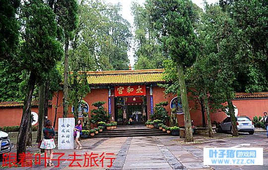 太和宫掩映在树丛深处,透着神秘的色彩 而对于我来讲,更喜欢金殿的植物景观。高大的桉树,香气四溢的兰花,气场满满的王棕,喜气洋洋随时好象会爆响的炮仗花,当然,色艳花大的各色茶花更让人着迷:
