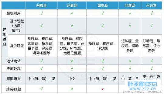 问卷星 :提供了功能强大的编辑问卷、收集数据、统计分析和样本服务功能,能够全方位满足企业在问卷调查工作当中的需求,不过专业版收费水平相对较高。 问卷网 :编辑问卷功能相当强大,提供独特的NPS题型,帮助企业衡量用户对于产品的忠诚度,而且发布问卷的渠道十分丰富,但是无法设置提交验证码和填写问卷最少时间。 调查派 :能够满足企业基本的编辑问卷、收集数据和统计分析需求,但是发布填写问卷邀请的方式相对有限,而且平台暂不提供样本服务。 问道网 :编辑问卷与收集数据的功能相对齐全,问卷页面可以根据需要设为中、英、日三种语言,企业可以通过多种渠道发布填写问卷的邀请,但不提供样本服务。 乐调查 :能够自定义问卷LOGO、使用高级题型、引用专属模板、进行交叉分析和高级统计,而且完全免费,不过平台提供的发布渠道和发布规则相对有限,平台的样本服务收取一定费用。 编辑:叶子猪小秘书