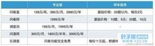 收费情况 在线问卷调查平台针对基础的问卷调查功能,均提供免费的服务,然而关于问卷录入、答卷收集和数据导出等具体功能,平台提供了功能更为齐全、且需收费的专业版服务,本文上述功能分析部分均为专业版服务内容。此外,问卷平台提供付费收集服务时,根据收集有效答卷的具体数量,收取样本服务费用。