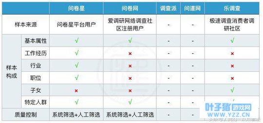 样本服务 部分问卷平台还提供了样本服务,即企业向平台支付一定费用,委托平台向符合调查条件的目标人群发布问卷,从而快速回收目标样本数据。样本来源一般是问卷平台本身的注册用户,或者是其他有奖调查网站的注册用户;样本库涵盖了不同人群的基本属性,包括地区、性别、年龄、学历、收入和婚姻状况,同时,平台还可针对特定行业、职位和子女状况的人群投放问卷。平台在收集答卷时,会通过系统自动匹配与时间控制等方式确保样本质量。