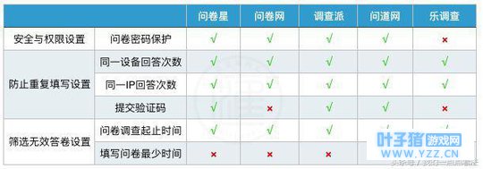 五家平台都设置了多样化的数据收集规则,基本能够满足企业确保答卷质量的需求,问卷星、调查派与问道网的答卷回收规则最为齐全,企业可以根据自身需要自行设定相应的规则。