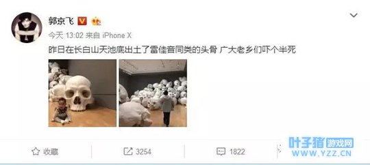 好不容易上回热搜的郭京飞又开始在微博上黑雷佳音头大,说:昨日在长白山天池底出土了雷佳音同类的头骨 广大老乡们吓个半死