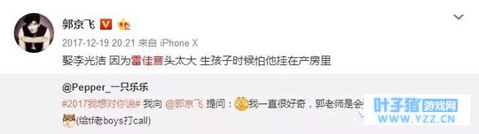 网友问郭京飞在雷佳音和李光洁两人之间会娶谁当老婆时,郭京飞选择了李光洁,因为雷佳音头太大,生孩子怕他挂在产房。