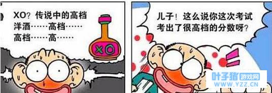 爆笑校园漫画:呆爸听到儿子说,xo?传说中的的洋酒.....高档....高档....高.....呆爸激动的和呆头问道,儿子,这么说你这次考试考出了很高档的分数呀?