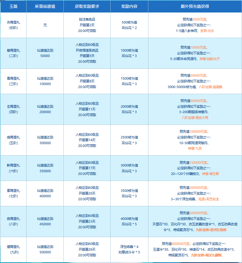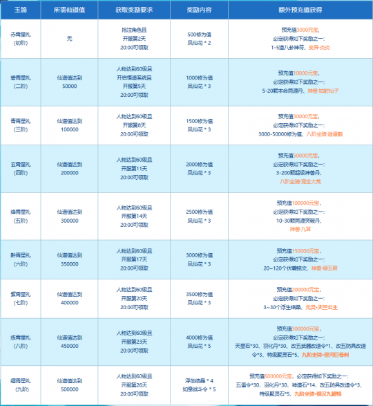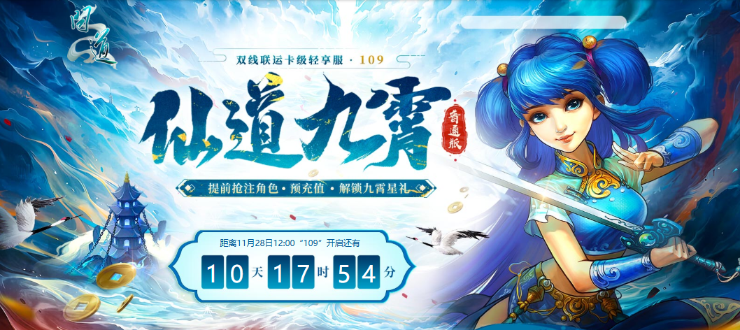 双线联运卡级轻享服“109” 轻量无压,修仙不内卷 开服 90 天锁定最高 109 级! 剥离等级碾压,卡级爱好者专注竞技,酣战更过瘾 组队、PK、活动匹配效率拉满! 新服角色抢注和预充值都已开启! 专属卡级服定制多重 PK 活动 实物、现金奖励不停送 欢迎各位道友前往新服“109”狂欢! 逐鹿争锋 活动时间 2025年11月28日00:00-12月29日23:59 王者争锋 活动期间,玩家参与“109”新服12月4日、12月11日、12月18日、12月25日开启的试道大会,除游戏内奖励外可额外获得“王者争锋”活动奖励。100-109等级段试道大会前三名的队伍可获得额外现金奖励。 参与试道大会,并与其他玩家战斗时至少胜利一场的玩家将会获得奖池抽奖机会一次,前往新服“逐鹿争锋”活动页面即可领取抽奖次数并参与奖池抽奖,有机会将随机神兽、变异、银元宝、问道周边、限时称谓奖励带回家。 群雄逐鹿 活动期间,玩家参与“109”新服首届帮战,除游戏内奖励外可额外获得“群雄逐鹿”活动奖励。各赛区前两强帮派帮主将获得现金奖励,三、四名帮派帮主可获得光宇币奖励。 各赛区冠军帮派成员获得限时60天铭牌“中洲强者”(奖励发放范围为:参与帮战战斗且发放时仍在冠军帮派的成员。) 新服“逐鹿争锋”官网奖池抽奖 活动期间,在试道大会中与其他玩家对战时至少获得1场胜利,可以获得奖池抽奖机会1次。 活动期间,所有报名且参与至少1次本服帮战战斗,可以获得奖池抽奖机会1次。 前往新服“逐鹿争锋”活动页面(https://actionv3.gyyx.cn/web/zlzf/index.html)即可领取抽奖次数并参与奖池抽奖,有机会将随机神兽、变异、银元宝、问道周边、限时称谓奖励带回家。 百舸争流 活动时间 2025年11月28日00:00至2026年01月18日23:59 活动内容 活动期间,角色等级≥60级的玩家创建队伍或寻找队伍,组满5人后进行报名参赛,每周日21:00截止报名(开启届数需要战力达到对应要求),同时开启赛场,玩家可通过活动大使处进入赛场。 当报名时间结束时,所有报名且符合参赛条件的队伍,将根据队伍战斗力相近原则,分为若干个小组;每个小组编入16支队伍,分配到一个赛场,展开十六强赛、八强赛、半决赛和决赛,最终决出赛事冠军。队伍实力值越强的赛场,银元宝奖励越高。 龙争虎斗 活动时间 2025年11月28日00:00至12月28日23:59 活动内容 活动期间,玩家等级≥60的玩家参与“龙争虎斗”pk活动,系统每日会为玩家匹配一名“劲敌”,如玩家当日获得斗志值点数多于对手,则视为战胜“劲敌”,可获得更多斗志值(次日获得1000点斗志值)。 参与天墉城擂台管理人进入龙虎擂比武,按照参赛道行,分为有道场和无道场。玩家可以根据活动时间安排参与单人赛,双人赛,三人赛,五人赛。不同赛制对应的斗志值奖励也不同,每日首次获胜可获得额外的斗志值奖励,后续遵循正常奖励规则。 活动结束后,玩家可前往龙虎榜查看斗志值榜单,前三十名可获得高价值物品及极品称谓奖励。斗志值还可以兑换道具奖励。 极品称谓 囊中乾坤 11月28日新服开启后,在新服处于世界等级开启期间,玩家使用锁麟囊道具或在灵兽异人处将宠物转化为银元宝,可以额外获得1倍数量的银元宝哦! 灵宠献瑞 待新服开服后,将同步开启灵宠献瑞活动,活动一共三期,第一期至第三期将按顺序开启。 玩家申购完成后,将立即获得申购时所支付金元宝等值的银元宝,并额外获赠20%的银元宝。并在所有成功参与该活动的玩家当中,随机抽取其中一位玩家获得当期宠物大奖! 预充值大派送 自今天起(至11月28日11:00)在新服“109”服务器预充值即可参与预充值大派送活动。 活动期间,在新服进行预充值满30元及以上即可获得一个抽奖资格码。活动共有七个阶段,每个阶段都有不同的奖励,累积预充值额度越高可参与抽奖的次数也就越多,奖池内的奖励也就越丰厚。 在第一阶段截止前,充值超过最大累计充值额度6000元,则可直接获得7个抽奖码。 仙道九霄 活动时间 2025年11月17日00:00至12月28日23:59 预充值统计截止时间:2025年11月28日开服前 活动内容 活动期间,道友们在新服注册角色和进行预充值都可以增加新服的仙道值。 累计仙道值可以激活不同档次的九霄星礼,预充值达到对应金额还有机会将天竺公主(元灵),九阶坐骑星河巨骨刺、银汉九曜鲲,八阶坐骑混世大荒等神宠大奖收入麾下! 新服福利活动简直太多了 编辑:月光下完美
