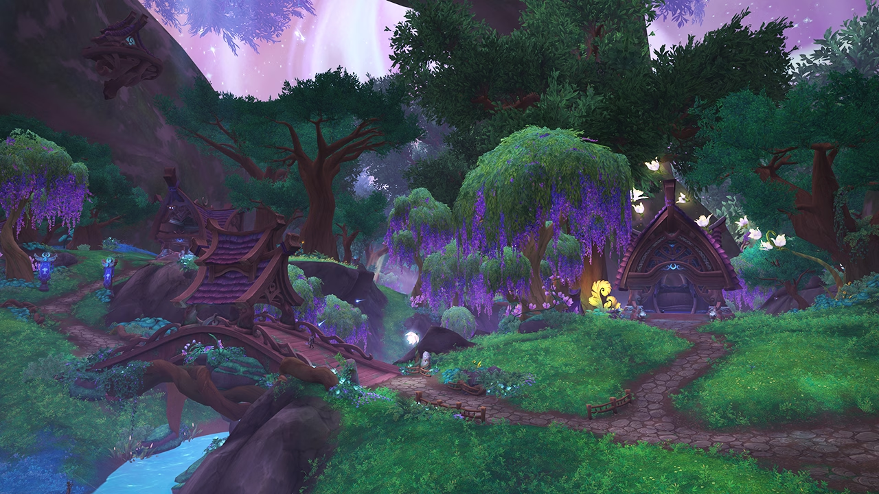 探索贝拉梅斯这里是为卡多雷提供不可或缺的寄托和慰藉的必要之地。这个全新的夜精灵居住地在巨龙群岛上与欧恩哈拉平原相邻。此地位于新世界树阿梅达希尔的枝干下方,且可以在《巨龙时代》的下一次更新《复兴之种》推出时前去探索。