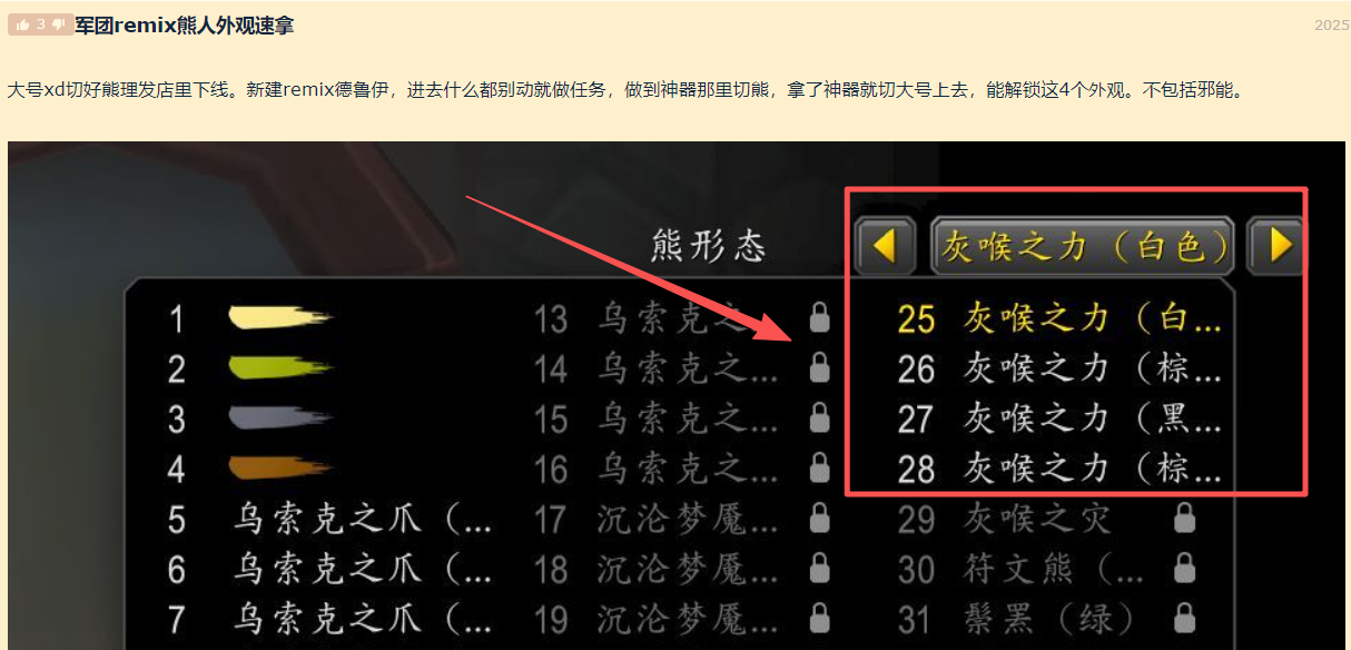 10月9日,《魔兽世界》将会上线特殊的模式“军团再临:幻境新生”,也就是军团Remix,允许玩家在回归7.0版本重新体验剧情,并创建一个时空奔行者角色,光速从10级升到80级,收集版本毕业的装备与过去的一些绝版幻化。 但与大家所认知的怀旧服不同,该模式并不是完全基于过去版本而打造的,而是新增大量内容。下面,咱们就来谈谈七个值得注意的点。 首先,魔兽世界高级游戏总监Ion Hazzikostas已明确表示,即便是在军团再临Remix末期阶段,也不会开放法师塔的挑战。也就是说,与之相对的大量神器外观并不会回归,想要肝这些的小伙伴可以放弃军团再临Remix了。 其次,小德的特殊外观已经确认可以在军团再临Remix光速解锁,尤其是熊德的灰喉之力外观,只需要做到神器任务线,就能直接获得,并光速同步给大号。因此,对于外观党来说,首发个德鲁伊是不错的选择。 然后,最重要的一点是这次的专精沿用了正式服版本,而不是7.0版本。因此,现在什么职业强,到了军团再临Remix中间还是什么职业强。并且,由于后期属性膨胀的关系,T职业先天就有“单刷”的优势。 而后,暴雪已经改口,目前在军团再临Remix中可获得外观,只需拿到一件,就能同步解锁它的换色款所有外观。因此,这一次军团再临Remix的肝度已经大幅降低,只需1个多月就能拿齐。 而这,也引发了后续一个问题,那就是在肝度大幅降低的情况下,暴雪所谓的追赶机制似乎就不那么管用了。尤其是在国服这个“内卷”的环境下,如果你不第一天就清主线提升装等的话,后面很有可能连进本门槛都达不到。因此,这里还是建议,对于想玩这个模式的玩家来说,第一周一定要把日常跟周常都清了。 对于想要肝的玩家来说,优先关注会给予“无限知识”的任务,因为该道具每提升一层就能加快全帐号“无尽之力”的获取速度,而“无尽之力”则是用来升级神器的主要道具,也是军团再临Remix提升数值的关键。所以,不论你只想玩一个号,还是想多肝几个,都要把获取“无限知识”放在第一位。 最后,就是有关首发职业的推荐了,考虑到后期属性膨胀的关系,DH、骑士、武僧、DK、战士、德鲁伊,这六个能切T的职业肯定是第一优先级,而后是ss、猎人这些自带宝宝,可以单刷的职业。 编辑:叶子猪小秘书