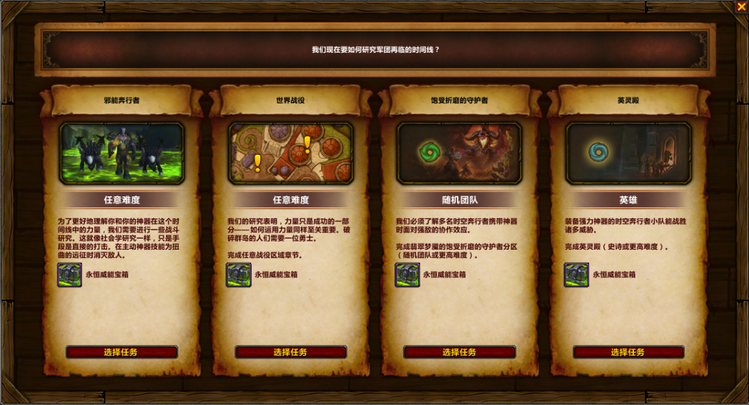 11月20日更新:第4阶段“永恒阿古斯”现已上线。阿古斯区域,“执政团之座”地下城,“安托鲁斯,燃烧王座”团队副本等内容现已开放。 准备在军团再临:幻境新生中加入快节奏的狂欢,与永恒龙军团再一次联手,升级全新角色,将五花八门的物品纳入你的收藏。 我们将在“地心之战”第3赛季期间开启涡轮加速,提高奖励并推出优化改进,协助战团提升装备,让游戏体验更上一层楼。探索焕然一新的冷却管理器。 什么是军团再临:幻境新生? 军团再临:幻境新生是限时的季度性活动,玩家需要使用“军团再临”原版的12个职业创建一个时空奔行者角色,重新体验完整的“军团再临”内容更新,以更快的节奏从10级升至80级,并且有一些重大的玩法改动。 玩家将会收集能量、面对史诗级挑战,获取海量收藏品,包括宠物、坐骑和幻化套装。 无需另行购买任何内容,只需拥有《魔兽世界》游戏时间,即可在破碎群岛开启紧张刺激的冒险之旅。经典怀旧服的玩家只需要安装《魔兽世界》正式服客户端,就可以一同加入这场邪能狂欢。 《魔兽世界》试玩账号也可以体验《魔兽世界》的幻境新生,无需购买游戏时间就能升至20级。继续20级以上的旅程需要购买游戏时间。 无所不包 德鲁伊职业大厅 玩家可以探索全部十二个地下城、一个大型地下城、五个团队副本、所有“军团再临”战役任务、当地剧情、世界任务、职业大厅战役和神器任务线、军团突袭、侵入点、枯法者训练等内容! 永恒龙军团会加快每周的内容锁定、声望获取和职业大厅任务,玩家只需畅享乐趣就好! 幻境新生前情提要 永恒龙军团的伊特努丝 在幻境新生:熊猫人之谜中,永恒龙军团的伊特努丝尝试着了解过去的秘密。 如今,随着新三部曲的展开,她打算研究导致了如今局势的一些重要事件,希望能够理解从燃烧军团手中拯救艾泽拉斯的关键所在。 军团再临:幻境新生全新内容 我们会加入全新的玩法系统,同时把握住原版“军团再临”体验的精髓。我们的目标是创造具有挑战性和策略性的游戏机会,让玩家最终靠史诗级的力量攻克难关。 幻境新生中的神器 月神镰刀神器专长树 幻境新生:熊猫人之谜中的披风和宝石系统将不会回归,这次的重头戏依然是神器。每一件神器都会共用一套强力的专长树,你可以在其中选择一条路径——自然、邪能、奥术、风暴或神圣。 专长树不会锁定,你随时都可以重置,新增的快速配置会让这一过程变得更为简单。你可以按住Ctrl键并点击鼠标,消耗剩余的所有永恒能量,朝着你选中的专长进行配置。按住Ctrl并点击右键则可以返还所选专长之后的所有专长点。 你还可以在冒险途中发现珠宝,为任意路径上的专长提升等级、从其他路径处转移专长,甚至让你所选的专长路径突破平常的极限! 自由混搭,定制专属于你的神器吧。 英雄世界难度 英雄世界难度的灵感来自于《暗黑破坏神》系列,是一种户外内容的全新体验方式。 伊特努丝正在进行试验,让艾泽拉斯的勇士们为可能出现的恶劣情况做准备。她会强化野外生物,赋予它们更多生命值和伤害,有时还会施加类似词缀的特殊效果,同时提高难度和奖励。 遭遇这些难度骤增的敌人时,如果你能够击败它们,就可以获得丰厚的奖励。 时空扭曲方尖碑 军团再临:幻境新生中随处可见的时空扭曲方尖碑能够强化你的力量。这些方尖碑能够赋予强大的临时增益,为探索世界的玩家提供助力。 弥时钥石地下城 我们希望为热爱史诗钥石地下城的玩家带来新的乐趣,开发了弥时钥石地下城。我们会保留原版“军团再临”的绝大部分词缀,同时加入四个军团再临:幻境新生独有的词缀,名为伊特努丝的试炼。 永恒研究 玩家每天都可以选择新的研究任务,例如消灭恶魔、完成地下城、在驭空术期间收集青铜宝珠等。总共有超过100个任务,玩家还可以解锁同时进行多项任务的能力,选择数不数胜。 你不用每天都定时打卡,可以储存最多六天的任务,在准备充分后再去完成。不论是每天都参与军团再临:幻境新生,还是只在周末有闲暇时间,你都能做好冒险的准备。 多多益善的战利品! 紫罗兰魔翼鸦坐骑 幻境新生当然不能缺少海量的战利品。 全新奖励包括: 注入邪能的职业坐骑 精美绝伦的精灵艾萨拉风长袍 玛诺洛斯之盾幻化 瓦里安的邪能腐化之剑 还有许多从未上线的坐骑、幻化等内容。 寂灭者之镰 传承奖励包括了稀有的团队副本幻化,例如萨维斯的肩甲和寂灭者之镰(包括原版、红色版和新增的邪能绿)。其他传承奖励还有洛希恩徘徊者、带镣铐的乌祖尔和紫罗兰魔翼鸦等稀有坐骑。玩家还可以获得“时序学者”、“狱火使者”、“永恒混乱的”等头衔。 战利品的代价 青铜货币将会回归,它们唯一的用途就是供玩家购买收藏品。装备的升级不再需要青铜,而是直接从各种内容中掉落。高难度内容有更高的几率掉落升级。 更多角色栏位,更早角色转化 我们会为所有《魔兽世界》账号添加五个新的角色栏位,方便大家创建更多角色。现在玩家也无需等待军团再临:幻境新生结束,即可将角色转移到“地心之战”中。 转移角色会移除所有幻境新生专属的物品和技能,清空任务日志,并为角色提供与等级相符的装备和金币。所有你收集的传承物品,包括尚未打开的收藏品,都会通过邮件寄送给你。 转移过程是单向的,在跨越时间线之前一定