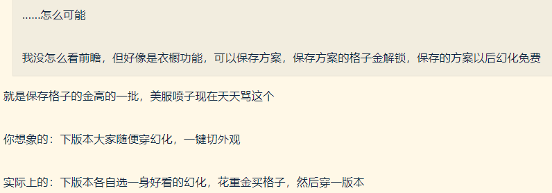 近日,随着12.0测试进入副本与各项新系统优化调整阶段,大量新机制、新玩法以及新系统获得曝光。其中,最让玩家无法接受的是,大秘境新增的骰子系统跟幻化栏位的出现,已经怒喷了设计师好几天。今天,咱们就来盘点一波。 一、团本骰子同步大秘境掉落 其实,关于团本的战利品骰子这个机制,已经被玩家喷了好几年了。原因就在于大家可以接受自己脸黑R不到装备,但无法接受自己因为一分之差,就只能眼睁睁地看着强力饰品被摸鱼的人拿走。甚至还衍生出了一波阴谋论,觉得游戏内置了防毕业与小号追赶机制,就是不让输出高的玩家摸毕业装。 可让人无法理解的是,暴雪居然不修改这个团本掉落,反倒将战利品骰子同步到所有副本,包括大秘境的掉落拾取。也就是说,大家以后打大秘境也要经历看着毕业装备被R走的情况了。但好消息是,以后躺尸老板可以更安心混装备了,无需担心有人尾王摸了装备就跑的情况。 二、幻化栏位要花80W解锁 另外,有关幻化装备找不到外观这个问题,也在12.0获得了解决。那就是设计师新增了幻化栏位的机制,即玩家可以在幻化栏预设一套或多套方案,以便可以随时随地切换自己的外观,无需再跟NPC进行对话。 这原本是个便利性更新,但在执行过程中却出现了严重的问题。 首先,除了一开始送的2个栏位,后面的幻化栏位开启均需要金币,最高得花80W金币解锁20个栏位。其次,这个栏位只跟角色绑定,而不是战团绑定。最后,栏位只是开启费用,在栏位更改外观还得按部位收费,且比现在贵几倍。 而在美服喷子的火力输出下,暴雪已经退了一步,将幻化栏位改为战团绑定,让玩家只用付一次80万即可。但单件装备外观的幻化更改费用依旧高昂,只能说,这是妥妥的金币回收机制了。 三、禁插件,但团本依旧复杂 目前通过卡BUG的方式,玩家可以五人组队激活团本BOSS黑暗纳鲁“鲁拉”,也因此该BOSS的普通难度机制获得曝光,即久违的点名排队。该机制是BOSS会在战斗中展示四个符文,在展示完毕后,需要被点名的四个人按照符文出现的顺序在10秒内依次排队站好,否则全团会吃到一个高额的AOE伤害。 说实话,这个机制并不算很复杂,但考虑到12.0会全面禁止战斗插件,且这还是普通难度就出现了四人点名。如果英雄、史诗难度再出现8人、12人,甚至是全团点名情况,场面将会变得异常混乱,所以有一部分玩家开始抱怨暴雪取消战斗插件的事情。 总的来说,我们能看出设计师确实是想要在12.0大刀阔斧进行改动的,但目前改动的内容大部分都引起了玩家的反感,如果一意孤行的话,大概率会劝退不少老玩家。 编辑:叶子猪小秘书