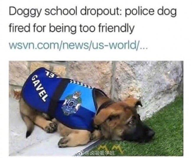 这只小警犬因为待人太礼貌太友好被开除了,熏疼。