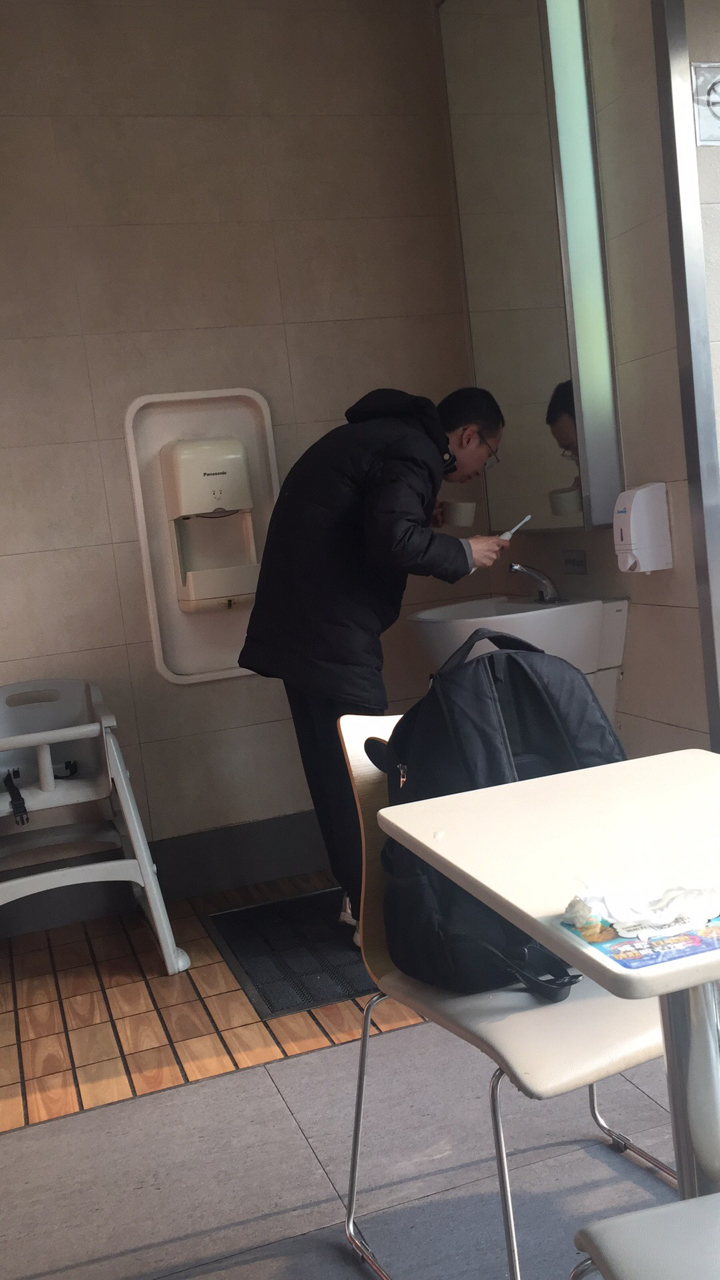 早上肯德基看到有人在洗刷