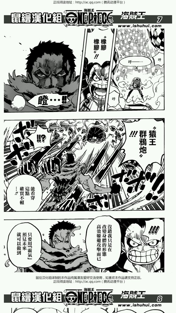 看了更新的一话,虽然拳拳到肉的打斗看了的确很爽,不过发现路飞上一话所说的“我明白了”只是指卡二呢见闻色能力,还是有点失望的。因为就算路飞开四档也完全没有能打败他的方法。路飞的四档的确很强,但是不能打到别人就是徒劳,见闻色也是自身实力的一部分。对卡二的实力我也做了较为深入的分析(纯属个人观点,不喜勿喷)