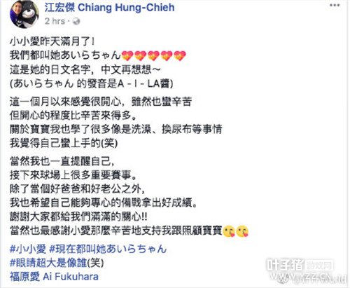 女儿日文名字叫あいらちゃん,中文名字还没确定,吃瓜群众都说要不然就叫小小爱吧,好听又可爱。