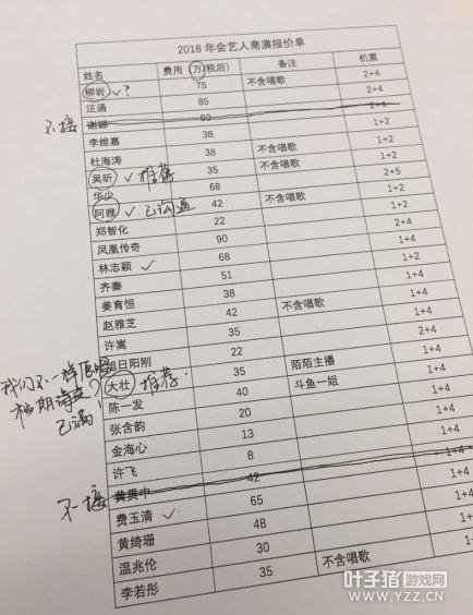 凤凰网娱乐讯 11月20日,有网友曝出2018年年会上艺人商演的报价单,引起热议。