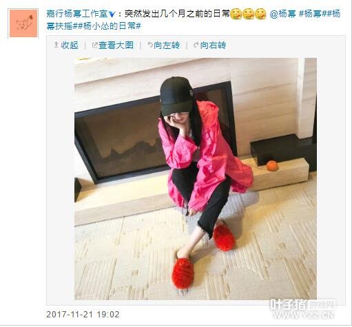 此照片曝光后,网友纷纷围观并留言称:“工作室也跟着杨幂学坏了,发日常都不发全脸”、“给工作室鸡腿”、“文艺幂回归,日常也这么有范”。