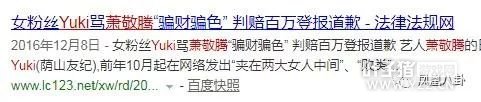 13年7月,和偶像成为邻居的yuki凌晨狂按萧敬腾家门铃,称要送煲汤给萧喝,最后警卫出面将她带离。