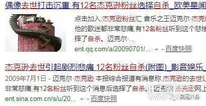 09年,音乐天王迈克尔·杰克逊去世,引起12名疯狂粉丝自杀。