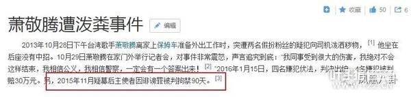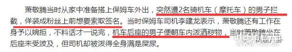 同年10月,就发生了一起“泼粪”事件——萧敬腾突遭两名假扮粉丝的疑犯向司机泼洒秽物,歹徒泼洒完秽物之后,还撂下狠话“你给我小心一点!”