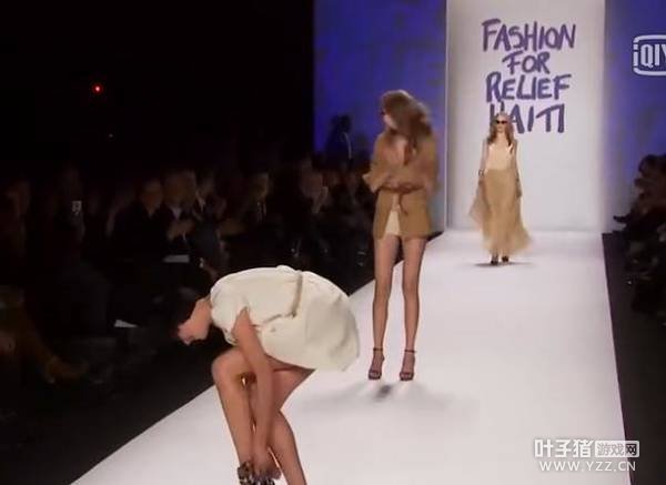 看看以往模特们摔跤的原因,大多是因为高跟鞋不合适,或者是地板太滑扭到了脚,不过她们很快都站了起来。