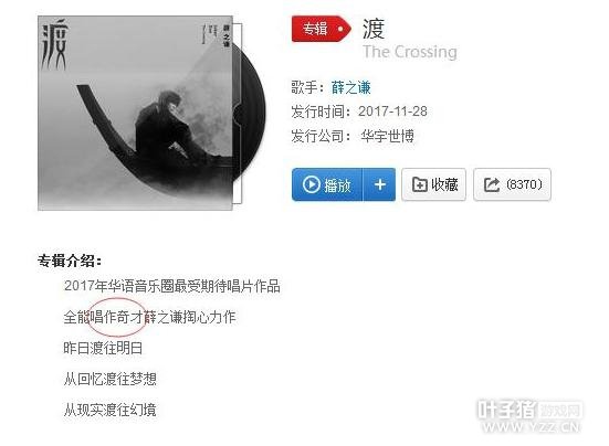 薛之谦专辑介绍文案