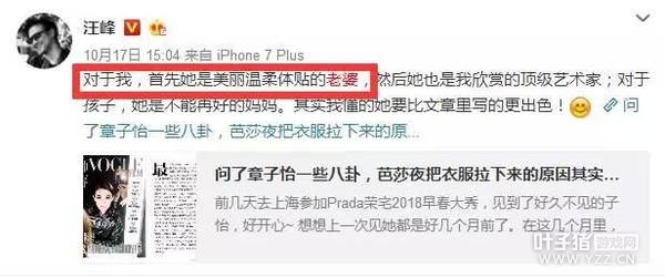 汪峰说:“对于我,首先她是美丽温柔体贴的老婆,然后她也是我欣赏的顶级艺术家;对于孩子,她是不能再好的妈妈。其实我懂的她要比文章里写的更出色!