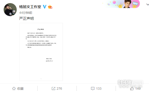 杨旭文工作室还称会将保留代杨旭文依法追宄相关谣言发布者法律责任的权利!