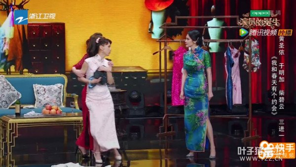于是凤萍、小蝶、莲茜三个人在台上尴尬地唱起《我和春天有个约会》。
