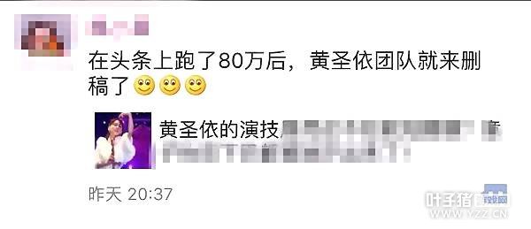 而且在娱乐君的朋友圈里,至少有两位自媒体运营者,发朋友圈吐槽自己的文章被黄圣依的巨力影视公司举报了……