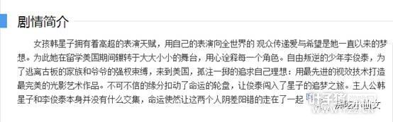 剧情是不是有一种熟悉的味道,再看看这海报,是不是想起了一部烂片《逐梦演艺圈》?都是讲述为了演艺梦想在拼搏的呢~