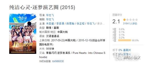之前的《纯洁心灵·逐梦演艺圈》创豆瓣电影评分历史新低,只有2.1分,也是不容易呢↓↓