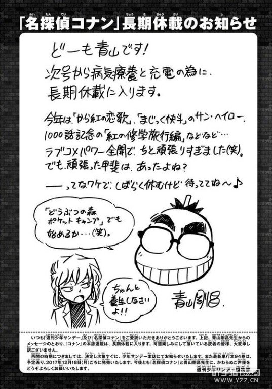 作者青山刚昌的休刊声明