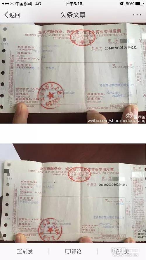 曹云金晒发票