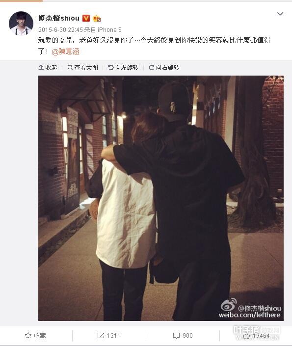 陈意涵曾经在521那天发过一条微博,说自己有大事要宣布,配图是自己牵着一个男人的手,虽然吧照片模糊了,但是一眼就能看出来那个人是修杰楷,微博一发,所有人都以为她要宣布和修杰楷的恋情了。