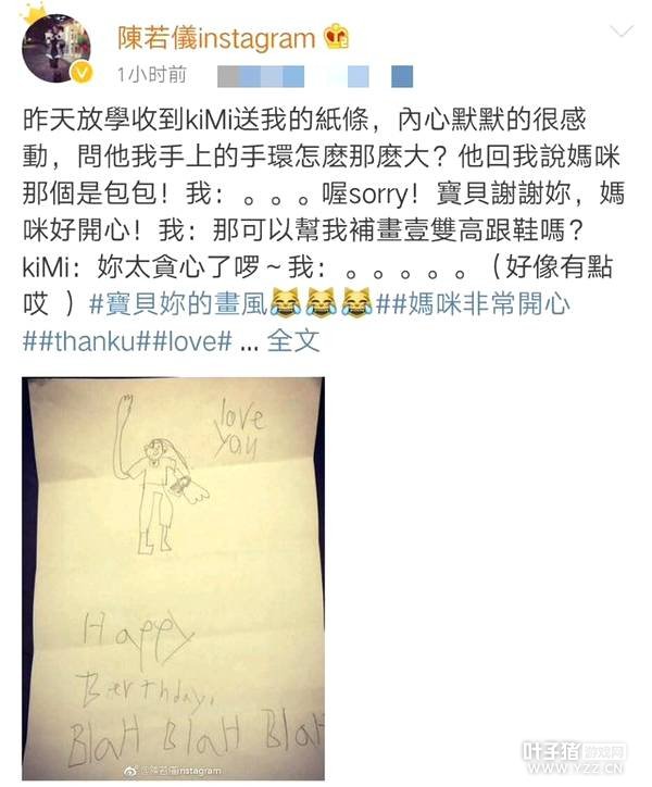 怎么会呢!看到画的时候陈若仪可是既感动又感恩的哦!虽然画风有点儿让人哭笑不得,但都是孩子的一片心意!相信陈若仪会珍藏kimi送给自己的每一份礼物,不管是什么!