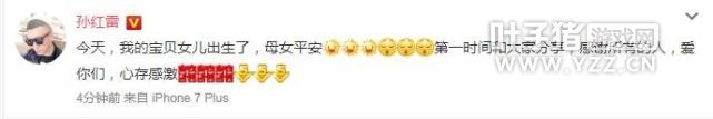 网易娱乐12月16日报道 12月16日,孙红雷发文报喜,称自己的宝贝女儿出生。他写道“今天,我的宝贝女儿出生了,母女平安,第一时间和大家分享,感谢所有的人,爱你们,心存感激”。