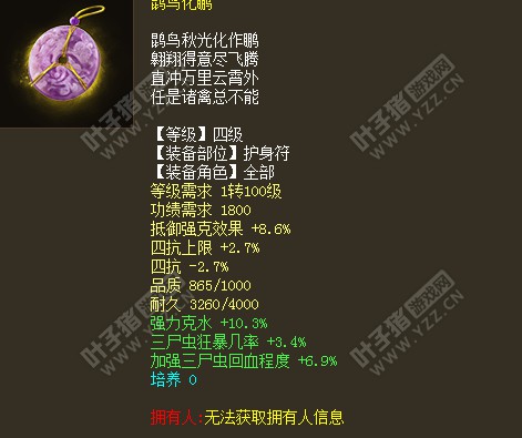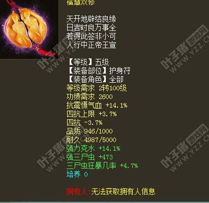 关于各大种族护身符的搭配与选择。 (护身符)作为大话西游第十四部资料片(灵宝降魔)重磅推出的第十二件装备, 其作用与效果已经得到广大玩家的认可 基本是属于护身在手 ,天下我有, 升级 ,任务不可缺少。 其中返生香复活特技更是PK杀人必备良品。 怒而不发也让大招破魔创造了极限一回合塔六。 无功绩特技,让你吊丝立变高富帅 轻松带上7级护身符。 虽然护身符推出至今已有数年,但还是有不少的玩家对于自己应该选择一个什么样的护身符而苦恼,甚至买错了护身符 ,花了不该花的钱。此文适用于刚接触PK的朋友。 下面希望我对护身符的认识 以及图片的展示,能够让你对护身符有个更清晰的认识,从而选择一个适合自己的护身符。我将分4个种族 持续更新,以下属个人见解,不足之处希望大家体谅补充! 鬼族护身符篇: 大力鬼: 作为一个已经得到验证并且在历届比武大会亮点不断的崛起种族,凭借其抗性上限的优势,以及鬼族大招的无解,大力鬼不管在老区或者新区都占据了一席之地 随处可见到这个崛起种族的身影。那么大力鬼的护身符应该是个什么样? 推荐: 第一选择:950品质黄字属性抵御强克+4抗绿字属性命中附混(或者单命中)。 第二选择,4抗上限+抗情网绿字属性命中附混(或者单命中)