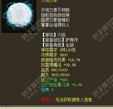 回血鬼大话里的医生,无私的奉献,让你挂机无忧 pk无虑。 推荐第一选择:950+品质黄字属性抵御强克+4抗绿字属性强虫子+虫子狂暴 第二选择:黄字属性4抗上限+抗金箍绿字属性 强虫子+虫子狂暴 第三选择:4抗上限+抗震慑魔法(或者气血)绿字属性强虫子+虫子狂暴 第四选择:黄字属性强克4抗绿字属性强法+克 或者狂暴+克(属于克回鬼) 第五选择:抗抽魔法+御强强克 双抗震慑等等适合平民(绿字属性超极品的强三尸虫+虫子狂暴+回血程度 另外根据队伍的需要 黄字属性可以选择负敏4抗 双负敏等属性 黄字品质绿字属性同上) 遗忘鬼鬼族中唯一一个控制系的单位 ,但是其犀利程度无法和人族媲美,所以遗忘鬼的数量想对也比较少。 推荐第一选择:抵御强克+4抗上限 绿字属性强遗忘忽视遗忘 (暂无图) 第二选择:4抗上限+抗金箍绿字属性强遗忘+忽视遗忘. 第三选择:抗震慑魔法(或气血)+4抗上限 绿字强遗忘忽视遗忘,另外平民玩家选择抗震慑+抵御强克 抗震慑+抗金箍 等等。 大话火力种族的超变态输出,男人控制系法术的持续强势,那么抵御强克 大4抗 金箍 情网等各种针对 辅助是为了我们能更适应大话日新月异的PK节奏。以上护身符 携带特技 返生香 怒而不发 藏怒 无功绩等特技 价值会更高,关于护身符的品质和属性 请大家在能力范围内购买 品质900以上,不管是高玩还是平民舍得都希望大家玩的更好 明天我将在叶子猪论坛继续更新 人族护身符篇! <<<点击进入大话西游2论坛讨论>>> |